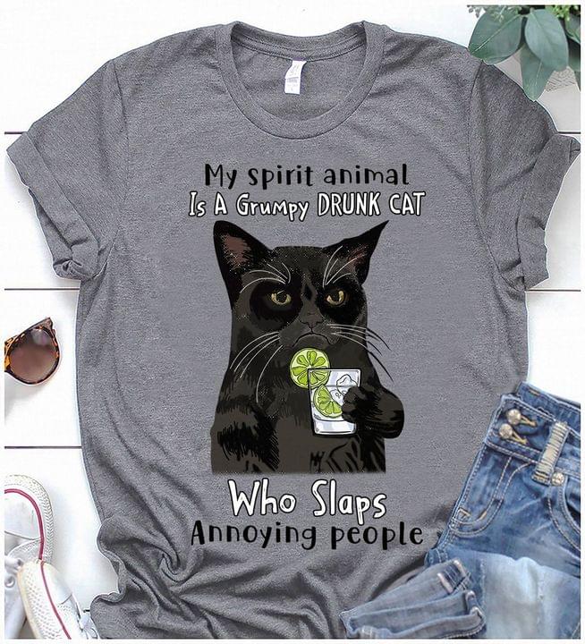 My Spirit Animal Is A Grumpy Drunk Cat Who Slaps Annoying People Black Cat Drinking Lemonade Shirt