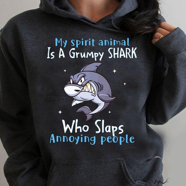 My Spirit Animal Is A Grumpy Shark Who Slaps Annoying People Cartoon Shark Shirt