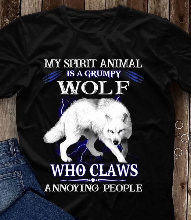 My Spirit Animal Is A Grumpy Wolf Who Claws Annoying People Angry Wolf Thunder Shirt