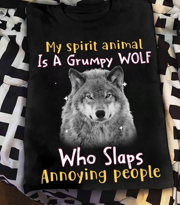 My Spirit Animal Is A Grumpy Wolf Who Slaps Annoying People Wolf Glitters Shirt