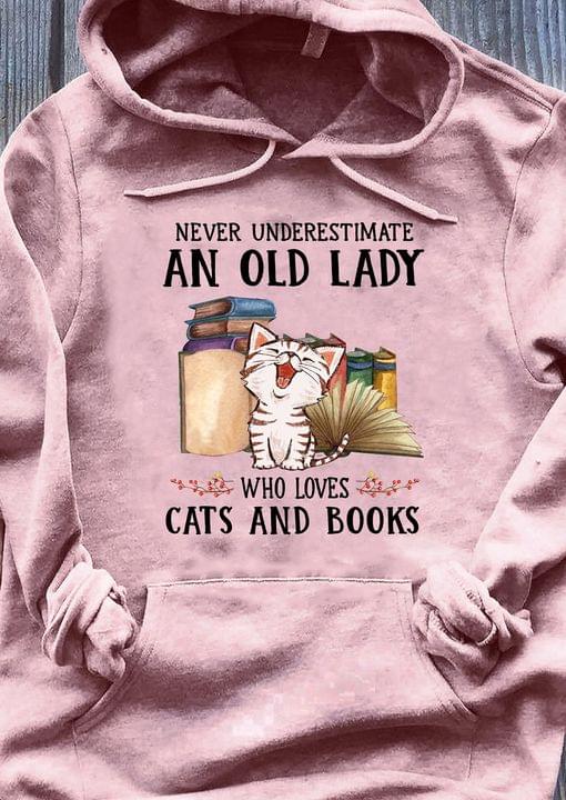 Never Underestimate An Old Lady Who Loves Cats And Books Happy Cat Books Knowledge Shirt
