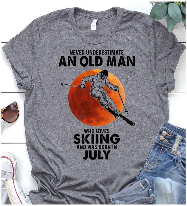 Never Underestimate An Old Man Who Loves Skiing And Was Born In July Red Moon Man Skiing Shirt
