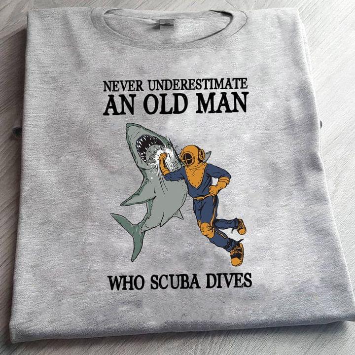 Never Underestimate An Old Man Who Scuba Dives Diver Fighting Shark Shirt