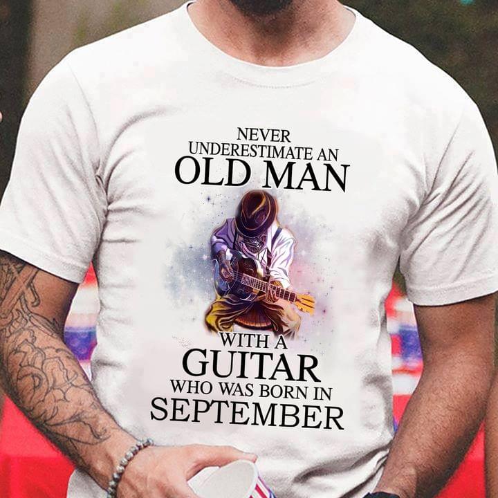 Never Underestimate An Old Man With A Guitar Who Was Born In September Cowboy Playing Guitar Shirt