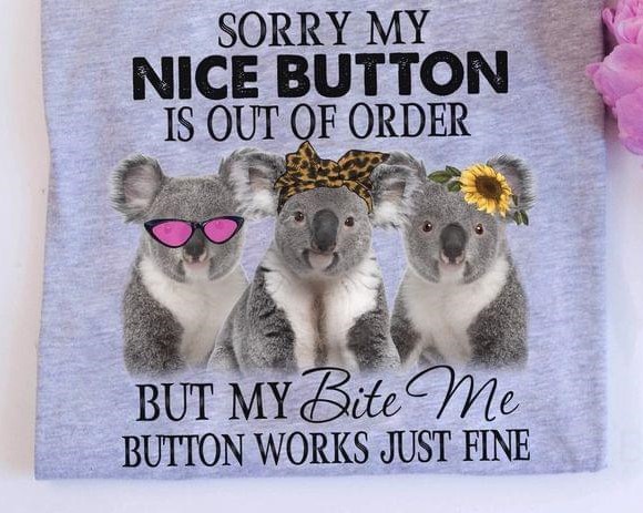 Sorry My Nice Button Is Out Of Order But My Bite Me Button Works Just Fine Cute Koalas Animals Shirt