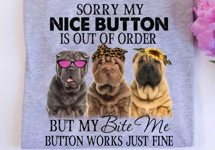Sorry My Nice Button Is Out Of Order But My Bite Me Button Works Just Fine Dogs Shirt