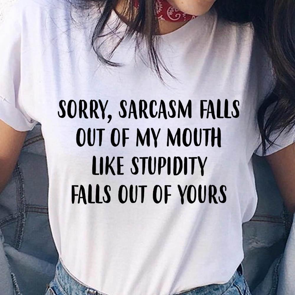 Sorry Sarcasm Falls Out Of My Mouth Like Stupidity Falls Out Of Yours Quotes Shirt