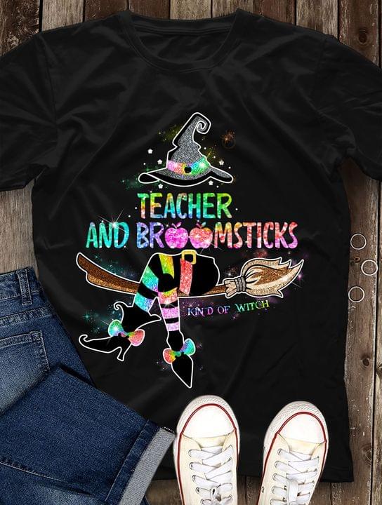 Teacher And Broomsticks Kind Of Witch Colorful Glitter Witch Halloween Shirt
