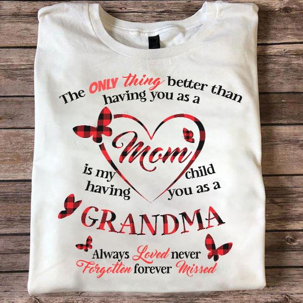 The Only Thing Better Than Having You As A Mom Is My Child Having You As A Grandma Always Loved Never Forgotten Forever Missed Butterfly Shirt