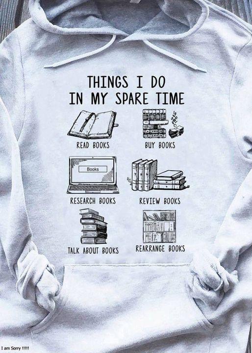 Things I Do In My Spare Time Read Books Buy Books Research Books Review Books Talk About Books Rearrange Books Laptop Bookshelf Knowledge Shirt