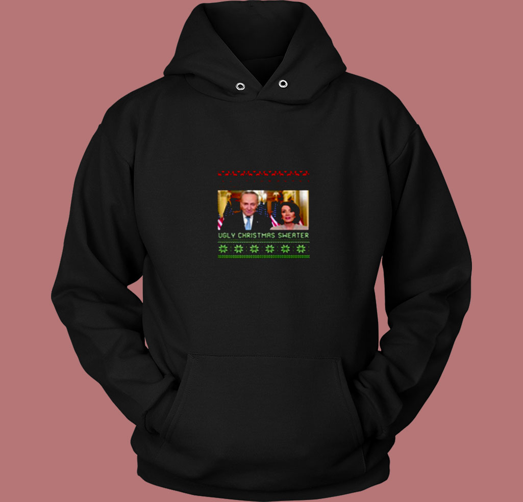 Ugly Christmas Nancy Pelosi Chuck Schumer 80s Hoodie