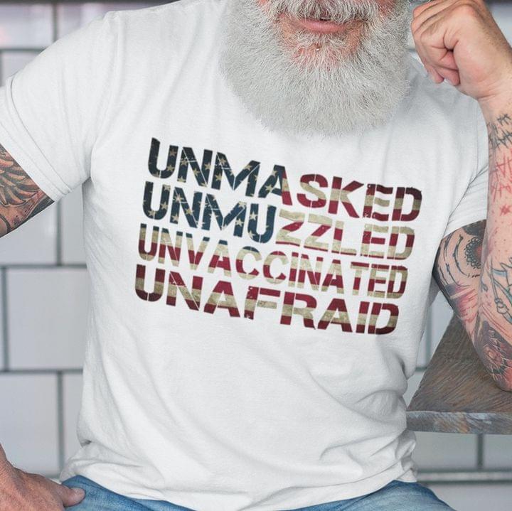 Unmasked Unmuzzled Unvaccinated Unafraid Flag Of America Shirt