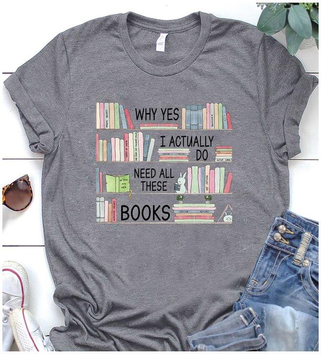 Why Yes I Actually Do Need All These Books Bookshelf Rabbits Shirt