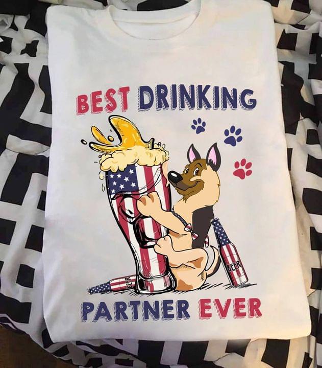 Best Drinking Partner Ever Flag Of America Glass Of Beer Dog Shirt