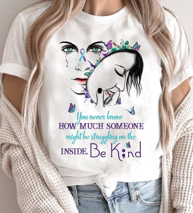 You Never Know How Much Someone Might Be Struggling On The Inside Be Kind Mask And Butterflies Shirt