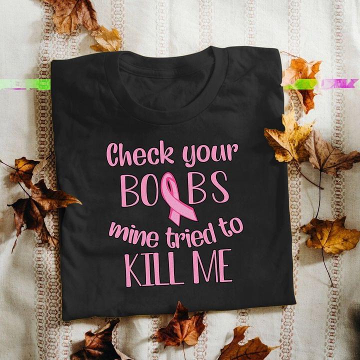 Check Your Boobs Mine Tried To Kill Me Shirt