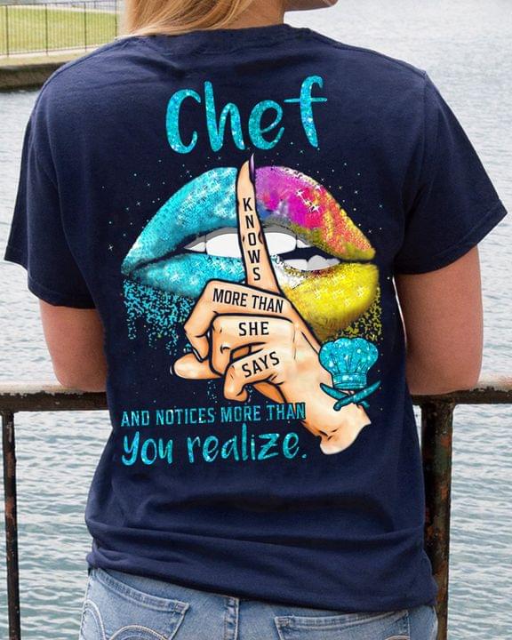 Chef Knows More Than She Says And Notices More Than You Realize Job Shirt (back Side)