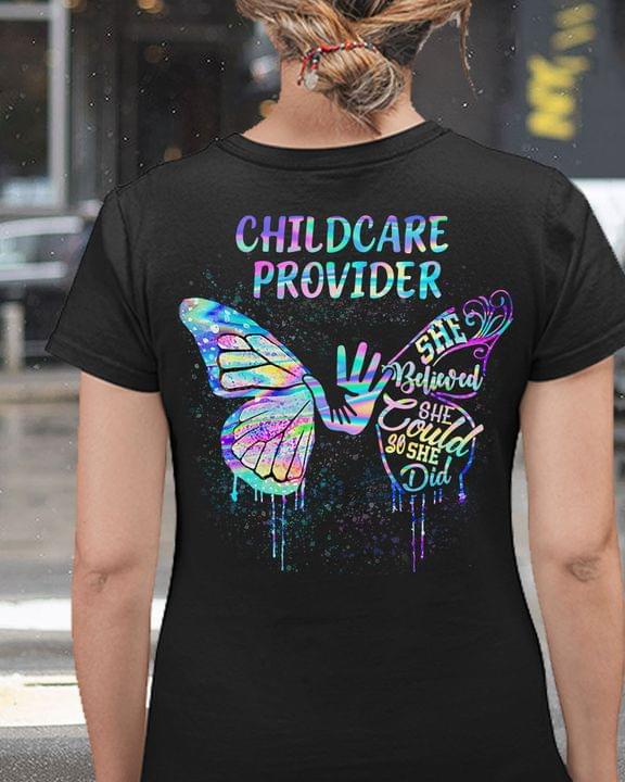 Childcare Provider She Believed She Could So She Did Hands Butterfly Shirt (back Side)