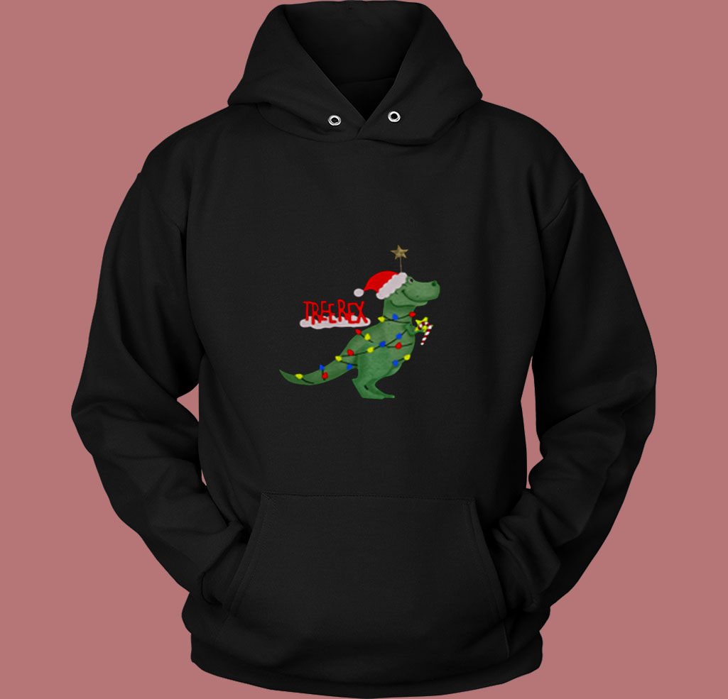 Christmas Tree T Rex Funny Parody 80s Hoodie