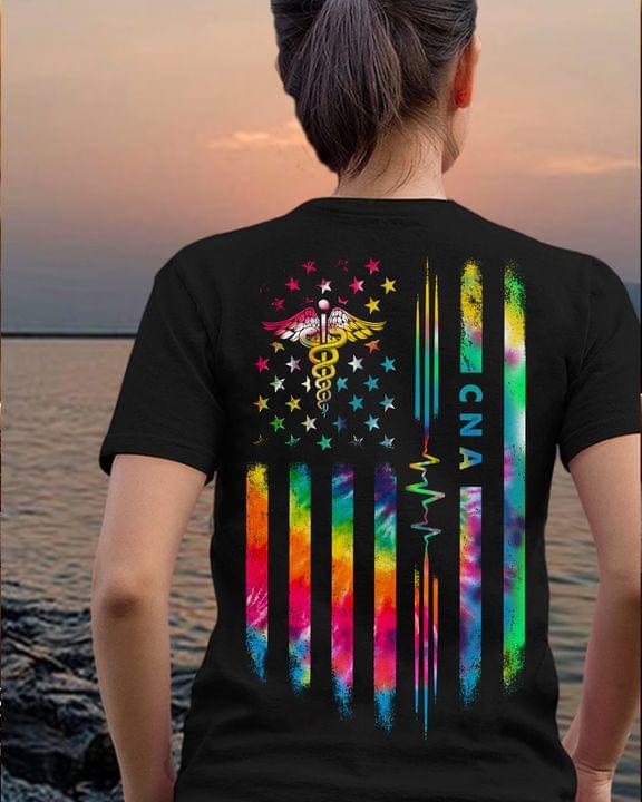 Cna Rainbow Heart Beats Emt Logo Stars Shirt (back Side)