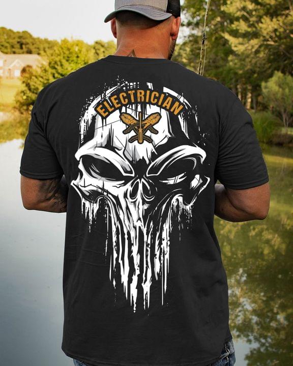 Cool Skull Electrician Love Job Shirt (back Side)
