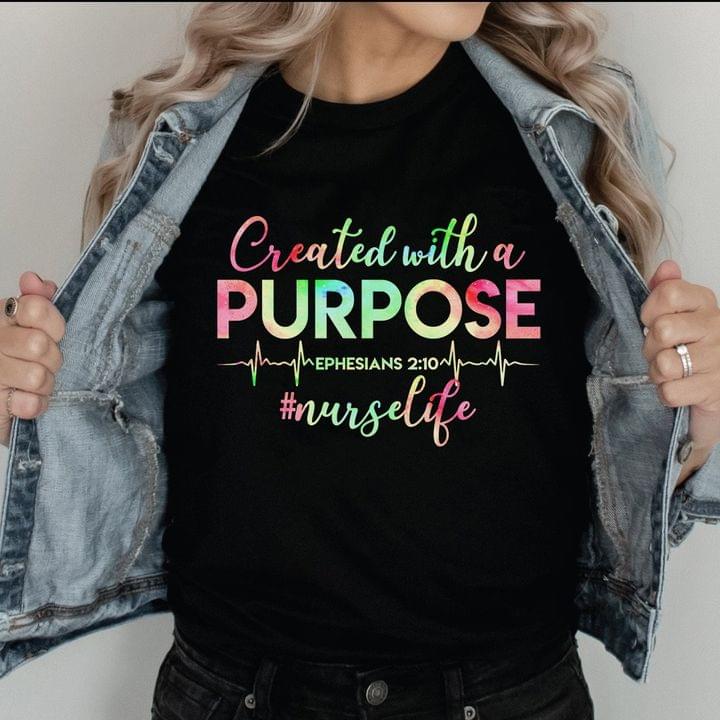 Created With A Purpose Ephesians Nurse Life Heartbeat Shirt