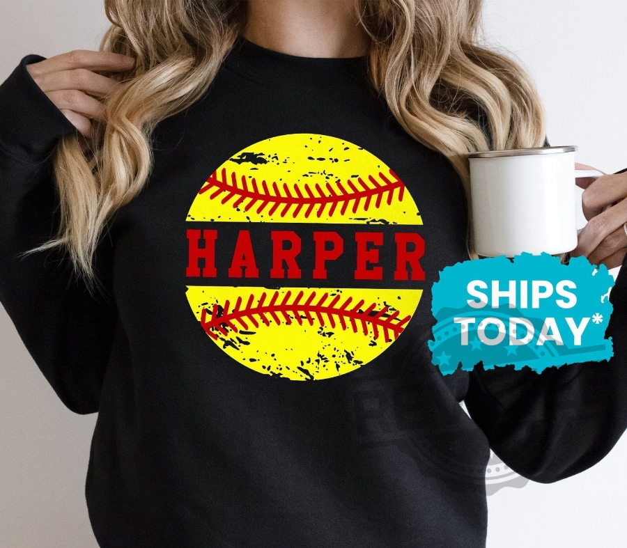 Distressed Softball With Custom Name