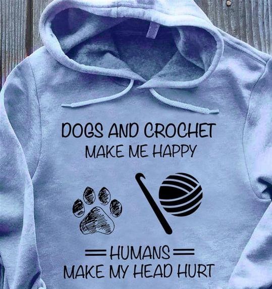 Dogs And Crochet Make Me Happy Humans Make My Head Hurt Dog Footprint Crochet Hook Wool Ball Shirt