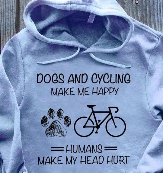 Dogs And Cycling Make Me Happy Humans Make My Head Hurt Dog Footprint Bicycle Shirt