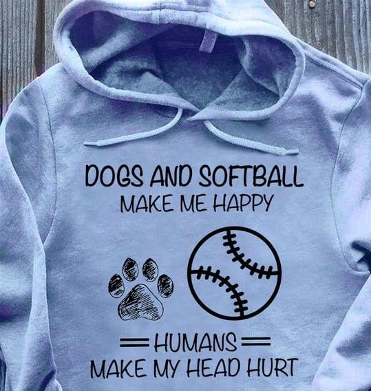 Dogs And Softball Make Me Happy Humans Make My Head Hurt Dog Footprint Softball Shirt