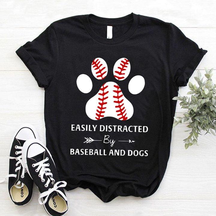 Easily Distracted By Baseball And Dogs Dog Footprint Baseball Shirt