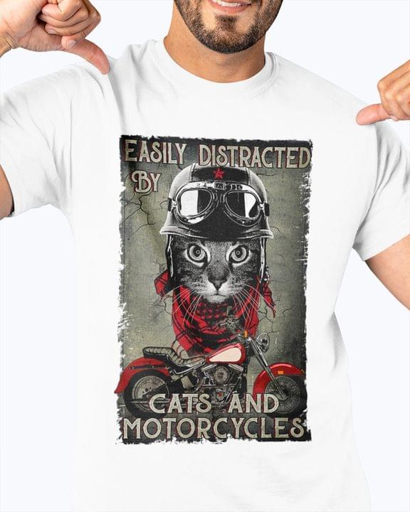Easily Distracted By Cats And Motorcycles Cat Wearing Helmet Shirt