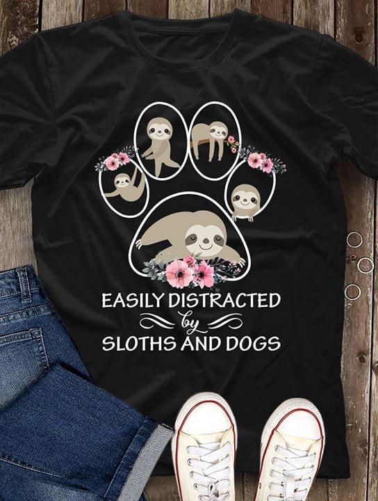 Easily Distracted By Sloths And Dogs Cartoon Sloths Dog Footprint Shirt