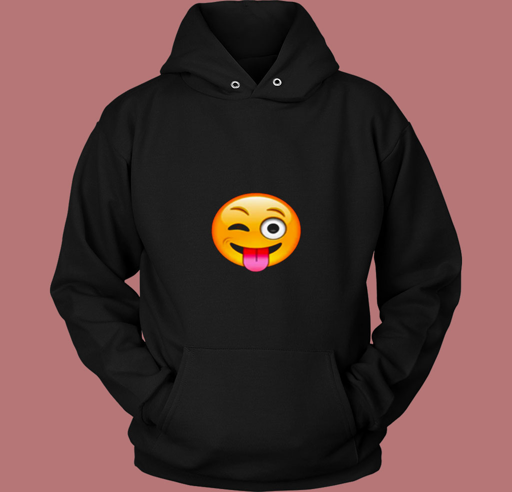 Emoticon Tongue Out Emoji With Winking Eye Smiley 80s Hoodie