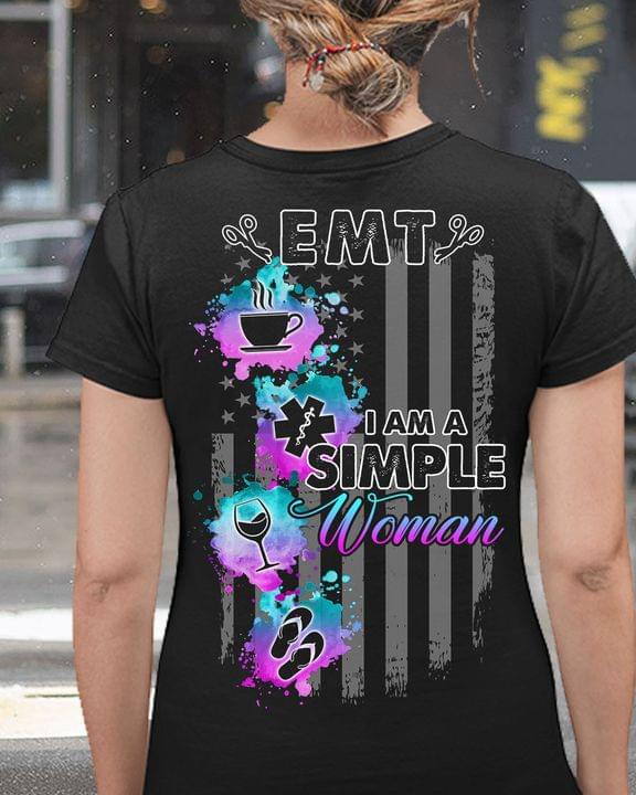Emt I Am A Simple Woman Cup Of Coffee Emt Logo Glass Of Wine Sandals Shirt (back Side)