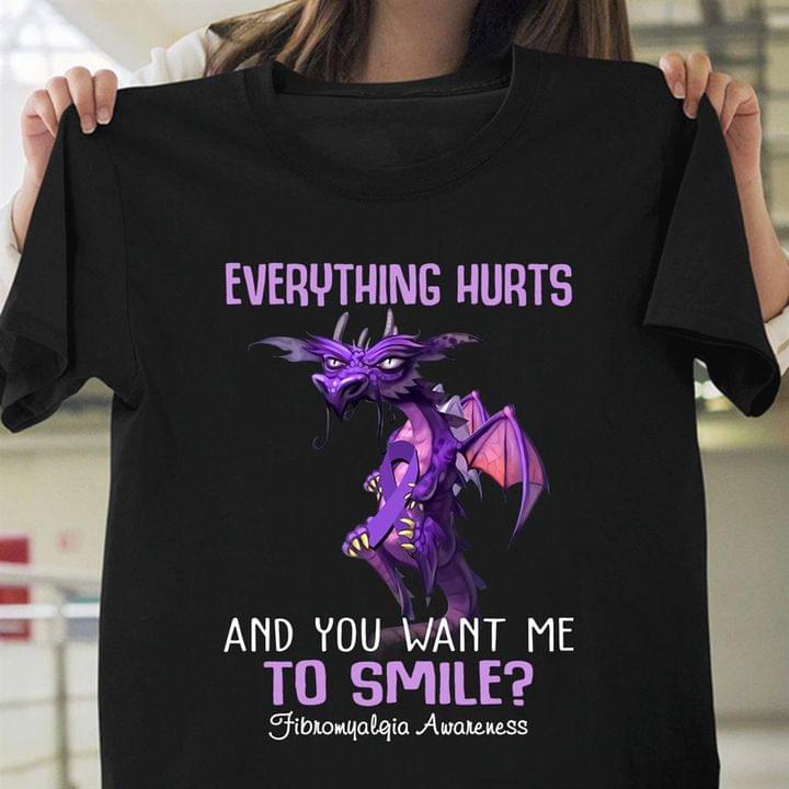 Everything Hurts And You Want Me To Smile? Fibromyalgia Awareness Purple Dragon Shirt