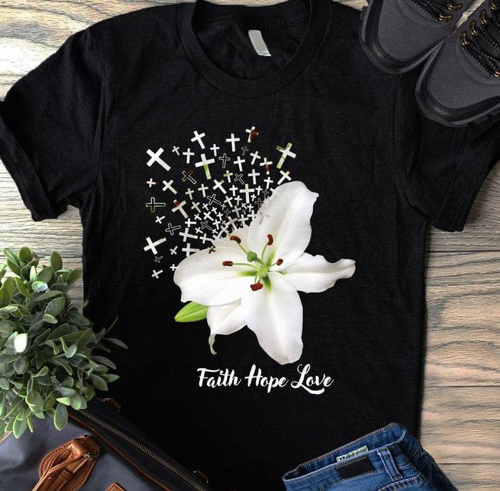 Faith Hope Love Lily Flower The Holy Cross Shirt