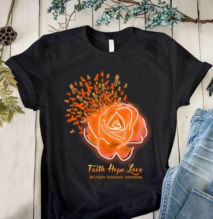 Faith Hope Love Multiple Sclerosis Awareness Orange Flower Shirt