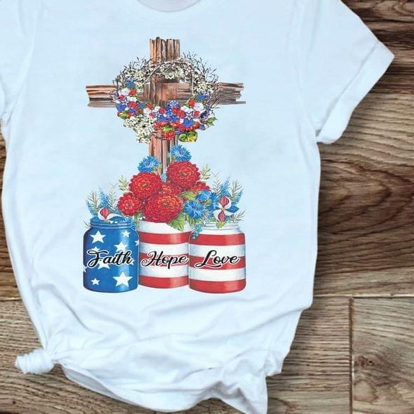 Faith Hope Love The Holy Cross Flower Circle Flag Of America Shirt