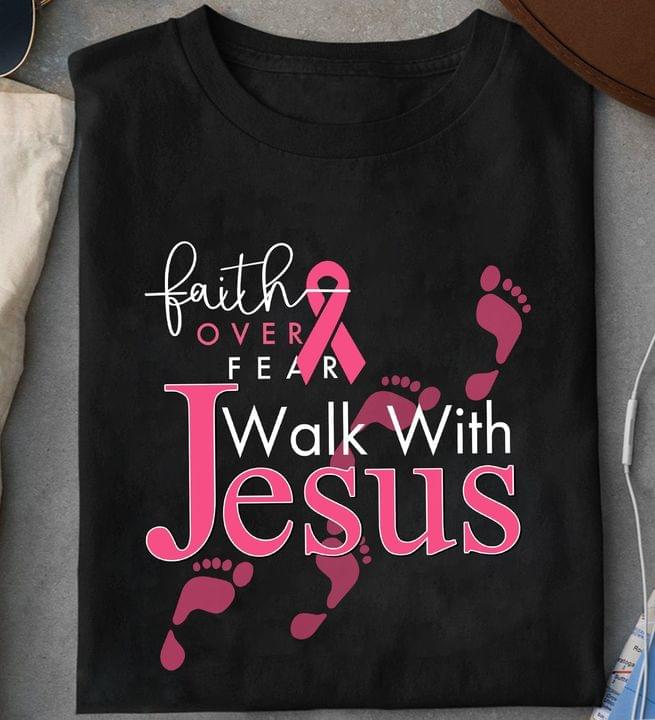 Faith Over Fear Walk With Jesus Pink Footprints Ribbon Shirt