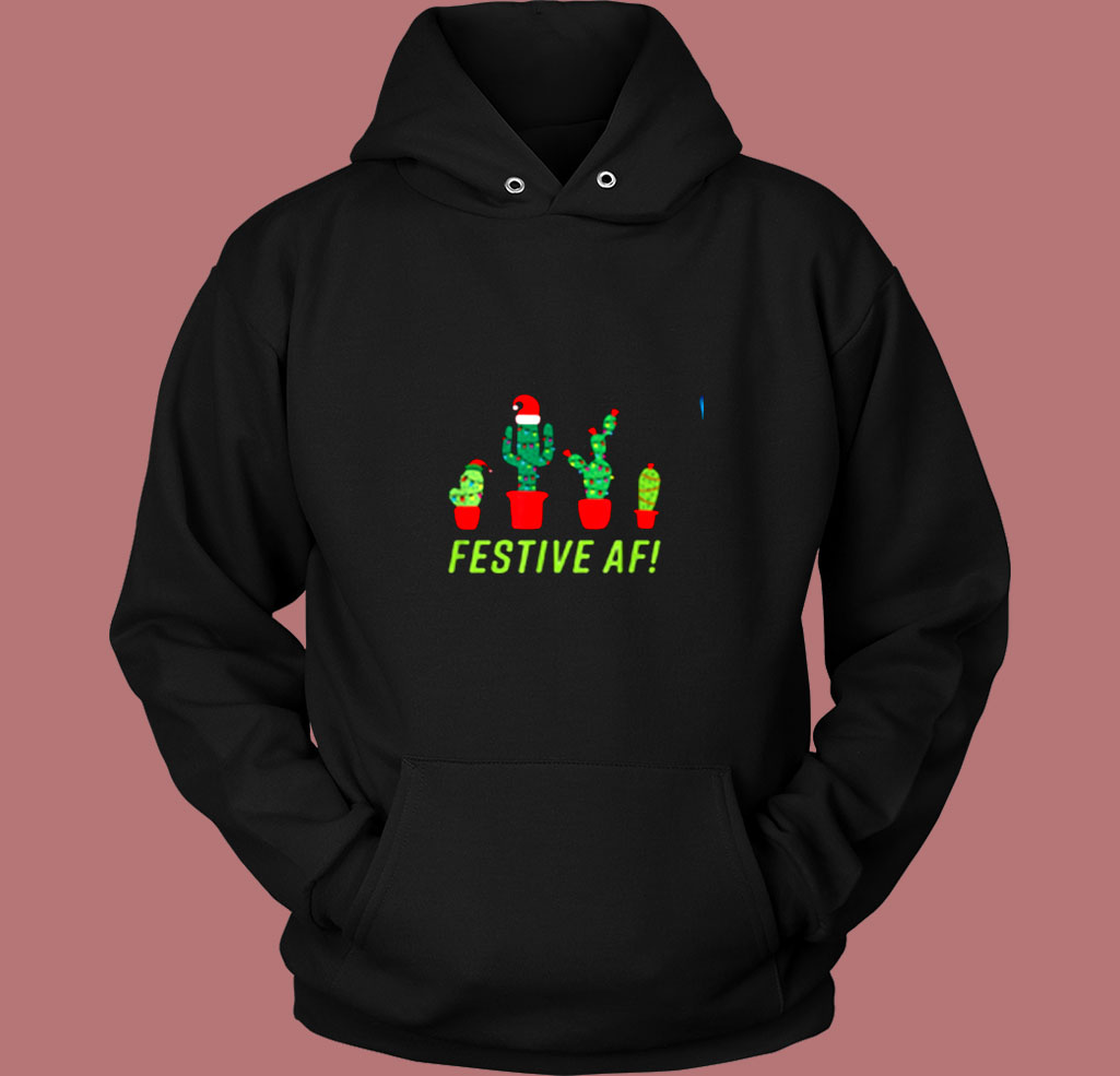 Festive Af Funny Christmas Cactus Fam With 4 Cacti Vintage Hoodie