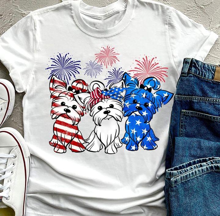 Flag Of America Displays Of Firework Yorkshire Dogs Shirt