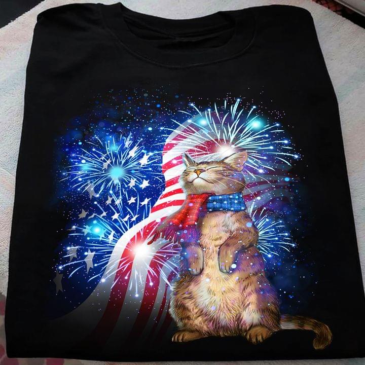 Flag Of America Glitters Cat Shirt