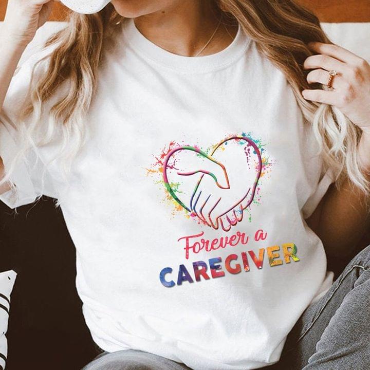 Forever A Caregiver Rainbow Hands Holding Heart Shirt