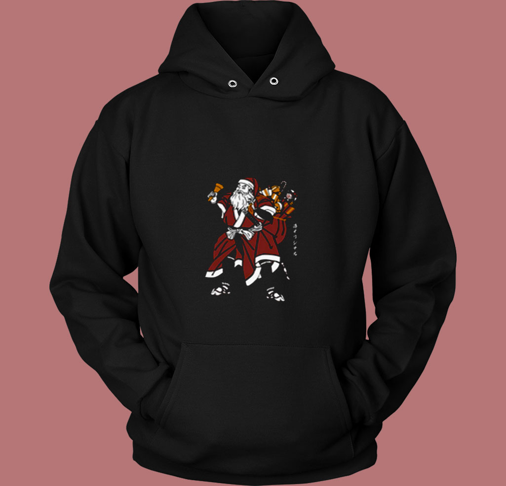 Funny Santa Samurai Christmas 80s Hoodie