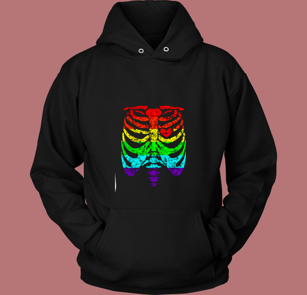 Funny Spook Skeleton Rib Cage Torso 80s Hoodie