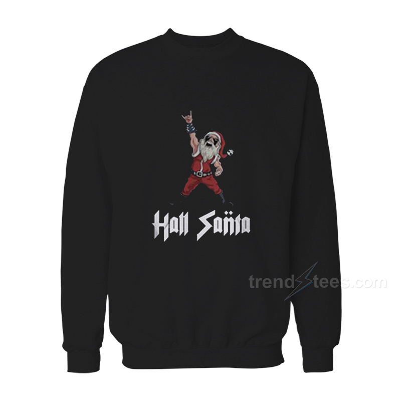 Hail Metal Santa Rock Pentagram Devil Funny 80s Hoodie