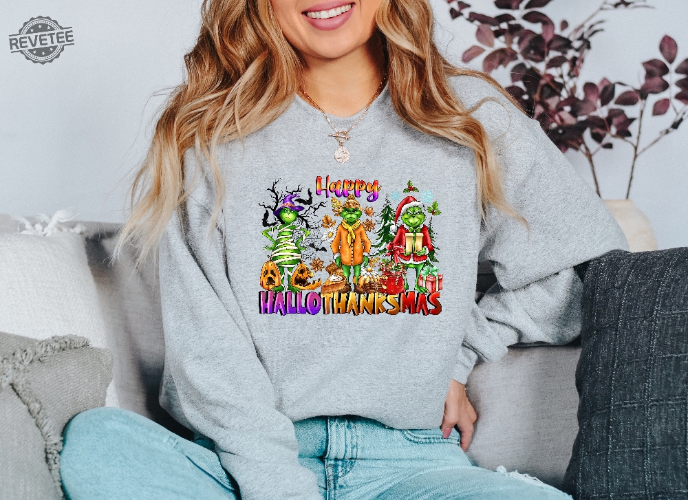 Happy Hallothanksmas The Grinch Pumpkin Halloween Thanksgiving Christmas Vintage Hoodie