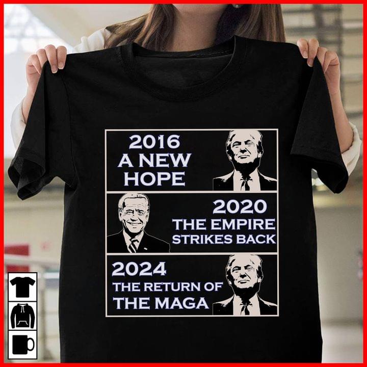 2016 A New Hope 2020 The Empire Strikes Back 2024 The Return Of Maga Joe Biden Donald Trump Shirt