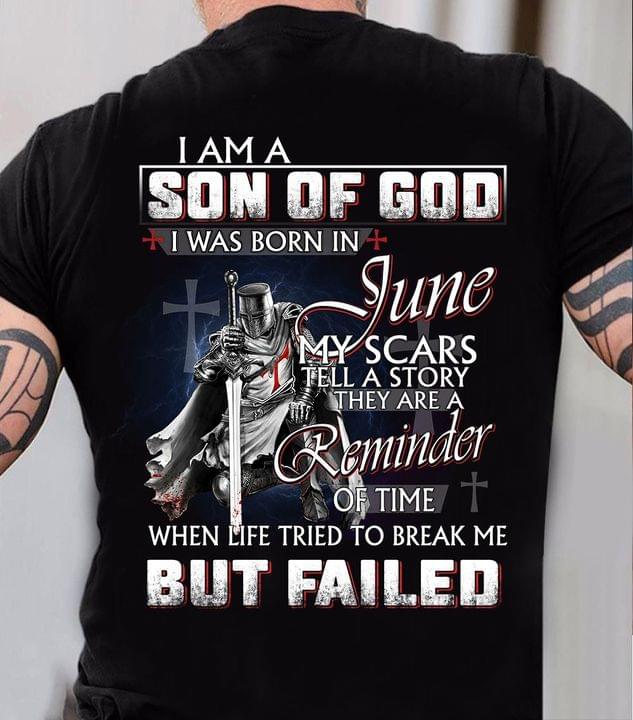 I Am Son Of God I Was Born In June My Scars Tell A Story They Are A Reminder Of Time When Life Tried To Break Me But Failed Dark Knight Shirt